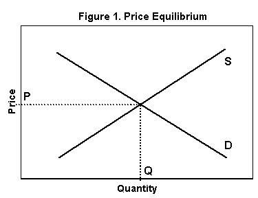 "market clearing" price. Graphically, this price occurs at the intersection of demand and supply as presented in Figure 1. In Figure 1, both buyers and sellers are willing to exchange the quantity Q at the price P. At this point, supply and demand are in balance.