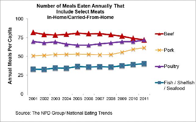 - Asians are more likely to choose pork, poultry and fish. An overall decline in beef consumption may suggests that Canada’s changing demographic profile has an influence on the proteins that Canadians eat.